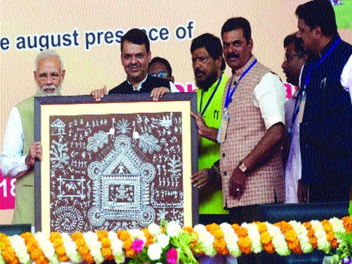 डोंबिवली : कल्याणमध्ये मेट्रो आणि सिडकोच्या गृहप्रकल्पाच्या भूमिपूजन कार्यक्रमाला आलेल्या पंतप्रधान नरेंद्र मोदी यांना खासदार कपिल पाटील यांनी ठाणे आणि पालघर जिल्ह्यांची ओळख असलेली वारली पेंटिंग भेट म्हणून दिली. ही खास भेट पाहून पंतप्रधान मोदी भारावून गेले. आदिवासींच्या या जगप्रसिद्ध कलेला मोल नसल्याची दाद त्यांनी दिल्याचे पाटील यांनी सांगितले.