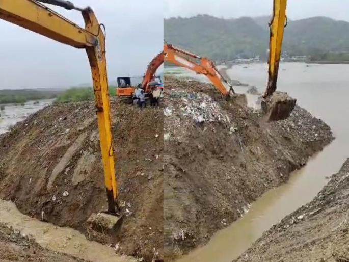 खासदारांच्या तंबी नंतर शनिवारी प्रशासनाने मोठ्या भरावातून पाण्याचा निचरा होण्यासाठी नाले खोदण्यास सुरवात केली आहे . तर येथील बेकायदा भरणी बंद करून झालेली भरणी व बेकायदा बांधकामे काढण्यासह संबंधितांवर गुन्हे दाखल करण्याची कारवाई प्रशासन करणार का ? या कडे लक्ष लागले आहे .