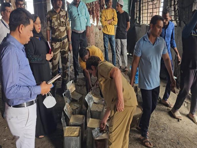शहरातील इदगाह साल्टर हाऊस येथे बंद असलेल्या कत्तलखान्यात शहरातील खाण्यासाठी कापण्यात आलेल्या म्हशी रेड्यांचे अपशिष्ट इदगाह साल्टर हाऊस येथे टाकण्यात येतात.तेथे या अपशिष्टा मधून चरबी वेगळी काढून सुकवून त्यापासून तूप बनविण्याचे काम या भागात बिनदिक्कत सुरू होते.हे तूप भेसळ करून अनेक खानावळ छोटी हॉटेल व तळलेले पदार्थ विक्री करणाऱ्यांना विक्री करून नागरिकांच्या आरोग्याशी खेळत असल्याच्या तक्रारी पालिका प्रशासनाकडे प्राप्त झाल्या होत्या.याची गांभीर्याने दखल घेत आयुक्त अजय वैद्य यांनी कारवाई करण्याचे निर्देश दिले होते. त्यानंतर पालिका पर्यावरण विभागाचे सहाय्यक आयुक्त सुदाम जाधव,आपत्कालीन विभाग प्रमुख साकिब खर्बे,कर मूल्यांकन विभागाच्या कार्यालयीन अधीक्षक सायरा बानो यांनी पालिका पथकासह या ठिकाणी कारवाई करीत तेथे तूप कढविण्याच्या भट्टी सुरू असल्याचे आढळून आले.त्यावेळी कर्मचाऱ्यांनी तूप कढविण्याच्या भट्टी वरील कढई मधील साहित्य फेकून देत,बनावट तुपाचे १५ किलो वजनाचे २० डब्बे,कढई असे मोठे साहित्य जप्त केले आहे.या बाबत पालिका प्रशासना कडून स्थानिक भोईवाडा पोलीस ठाण्यात गुन्हा दाखल करण्यात येणार असल्याची माहिती सुदाम जाधव यांनी दिली आहे.