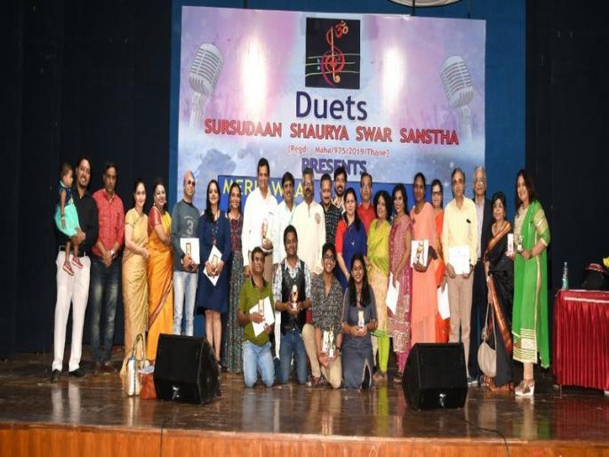 ठाणे : सूरसुदान शौर्या स्वर संस्थेतर्फे आयोजित मेरी आवाज मेरी पहचान 2019 कराओके फक्त हिंदी चित्रपटातील युगल गाण्यांच्या स्पर्धेची अंतिम फेरी डॉ. काशिनाथ घाणेकर मिनी सभागृह ठाणे येथे संपन्न झाली. कराओके स्पर्धेत नंदन जोशी व शर्मिष्ठा बासू प्रथम आले.