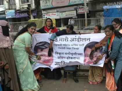 BJP Pravin Darekar And NCP : भिवंडीत राष्ट्रवादी महिला काँग्रेसच्या शहराध्यक्षा स्वाती कांबळे यांच्या नेतृत्वाखाली महिलांनी प्रवीण दरेकरांच्या बॅनरला जोडे मारो आंदोलन करून आपला संताप व्यक्त केला.