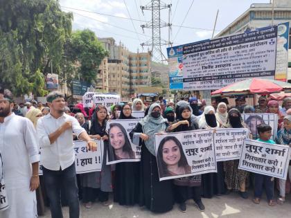 भाजपच्या राष्ट्रीय प्रवक्त्या नूपूर शर्मा यांच्या विरोधात मुंबई, भिवंडी तसेच मुंब्रा येथे एफआयर दाखल करण्यात आला आहे. नूपूर शर्मा यांनी मोहम्मद पैगंबर यांच्याबद्दल वादग्रस्त वक्तव्य टीव्ही वाहिनीवरील चर्चेत केलं होतं. नूपूर शर्मा यांच्या विरोधात कलम भादंविच्या २९५ अ, १५३अ आणि ५०५ ब अंतर्गत गुन्हा दाखल झालेला आहे. मात्र, त्यांना अद्याप अटक झालेली नाही. त्यांना अटक करावी, या मागणीसाठी मंगळवारी शानू पठाण यांच्या नेतृत्वाखाली शाकीर शेख, मैसर शेख, साकिब दाते, मर्जिया पठाण, नाजीम बुबेरे यांच्या उपस्थितीत जोरदार आंदोलन करण्यात आले. मुंब्रा ,कौसा भागातील शेकडो नागरिक मोर्चाने आंदोलनस्थळी दाखल झाले. या आंदोलकांनी दारूल फलाह मशिदीसमोरच रस्त्यावर ठाण मांडून रास्ता रोको करीत केंद्र सरकारविरोधात घोषणाबाजी केली. नुपूर शर्मा यांना अटक झालीच पाहिजे, मानवतेचे शत्रू कोण; भाजपशिवाय दुसरे कोण, नुपूर शर्मा मुर्दाबाद अशा घोषणा आंदोलकांनी दिल्या. तसेच शर्मा यांच्या प्रतिमेला जोड्यांचा मारही देण्यात आला. रास्ता रोको करणाऱ्या आंदोलकांना पोलिसांनी ताब्यात घेतले.