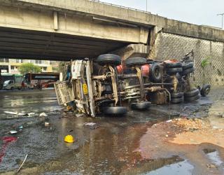 मुंबई-अहमदाबाद मार्गावर रॉकेल सदृश्य कच्च्या तेलाचा टँकर उलटला! टँकर चालकाचा मृत्यू