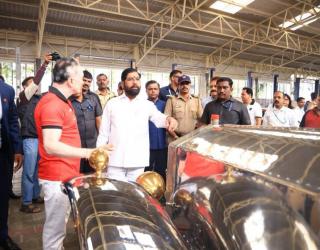 ठाण्यात उपमुख्यमंत्री एकनाथ शिंदे यांनी अनुभवला विंटेज कारचा थरार