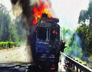 महाराष्ट्र : शॉर्ट सर्किटमुळे ट्रक रस्त्यातच पेटला