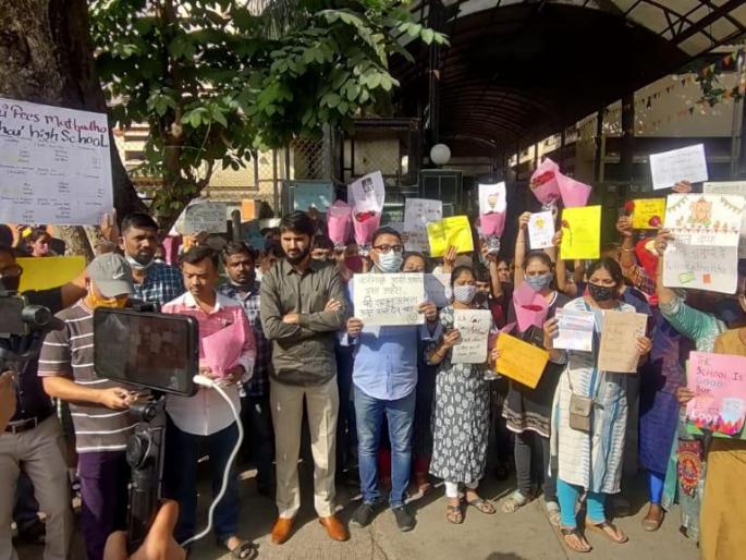 ठाणे: तुघलकी फी वाढीविरोधात वसंत विहार शाळेबाहेर पालकांचा ठिय्या; मनविसेच्या नेतृत्वाखाली गेटवर गणरायाची महाआरती