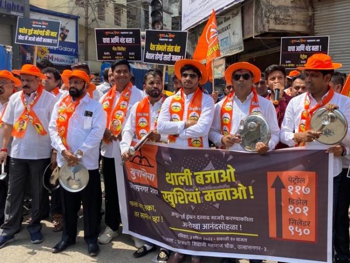 उल्हासनगर : मोदी सरकार काळात घरगुती गॅस, पेट्रोल, डिझेल आदींच्या किंमती दिवसेंदिवस वाढत असल्याने महागाईचा भडका उडल्याच्या निषेधार्थ युवासेनेच्या वतीने शिवाजी चौकात थाळी बजाओ आंदोलन करण्यात आले. यावेळी युवासेनेचे वरून सरदेसाई, युवा शहर अधिकारी बाळा श्रीखंडे यांच्यासह पदाधिकारी मोठ्या संख्येने उपस्थितीत होते.