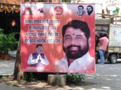 दोन्ही पक्ष मुख्यमंत्रिपदावर अडून बसले आहेत. त्यामुळे सत्ता स्थापनेचा पेच सुटणे कठीण होत चालला आहे. मात्र, या सर्व घडामोडींवर आता एकनाथ शिंदे हे महाराष्ट्राचे मुख्यमंत्री होवोत, अशी इच्छा मुंबई मराठी वाहतूक व्यापार सेना संघटनेचे अध्यक्ष अशोक पाटील यांनी पोस्टरवरून व्यक्त केली आहे. दरम्यान, ठाण्यातील कोलबाड परिसरात शिंदे यांचे फलक लागले आहेत. आमच्या ठाण्याचे लाडके ढाण्यावाघ एकनाथजी शिंदे महाराष्ट्राचे मुख्यमंत्री होवोत हीच आई तुळजा भवानीच्या चरणी प्रार्थना, असे फलक ठाण्यात लागले दिसून येत आहेत. त्यामुळे पुन्हा एकदा मुख्यमंत्री कोण होणार याकडे सर्वांचे लक्ष लागले असून राजकीय वर्तुळात खळबळ उडाली आहे.
