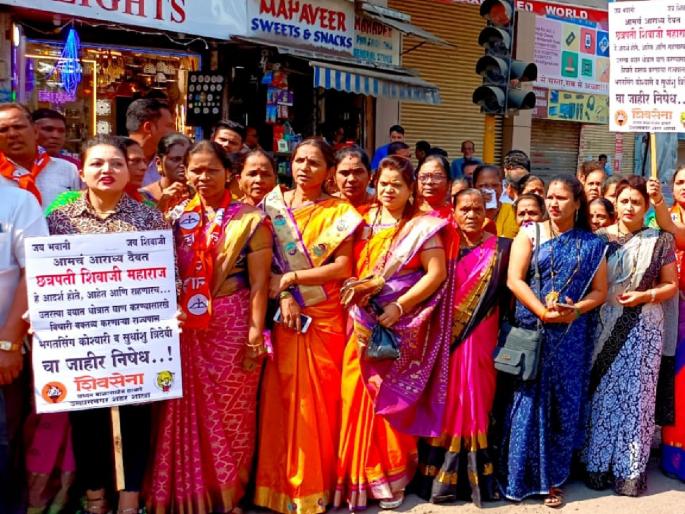 उल्हासनगर कॅम्प नं-३ येथील छत्रपती शिवाजी महाराज चौक येथे सोमवारी सकाळी साडे अकरा वाजता शिवसेना ठाकरे गटाच्या वतीने राज्यपाल भगत सिंह कोश्यारी व भाजपा प्रवक्ता सुधांशु त्रिवेदी यांनी छत्रपती शिवाजी महाराजा यांच्याबद्दल अपशब्द बोलले. यामुळे महाराष्ट्रात नव्हेतर देशात संतप्त प्रतिक्रिया उमटल्याची माहिती जिल्हाप्रमुख चंद्रकांत बोडारे यांनी दिली. शिवसेना शहर शाखे तर्फे जोडे मारो आंदोलन करण्यात आले. यावेळीं भाजप व शिंदे गटाच्या विरोधात घोषणाबाजी करण्यात आली असून आंदोलन वेळी काहीकाळ वाहतूक कोंडी निर्माण झाली होती.