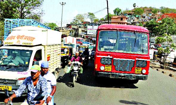 शनिवारी सकाळी ११ वाजता पुलावरून जाणारी एसटी बस तांत्रिक बिघाडामुळे तेथेच बंद पडली. परिणामी, वाहतूककोंडीत आणखी भर पडली.