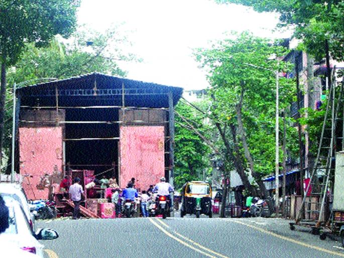 आचारसंहिता पायदळी तुडवत मंडपांची उभारणी
