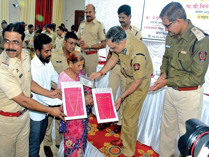 यावेळी अपर पोलीस आयुक्त दत्तात्रेय कराळे, कल्याणचे पोलीस उपायुक्त विवेक पानसरे, उल्हासनगरचे पोलीस उपायुक्त प्रमोद शेवाळे, सहायक आयुक्त अनिल पोवार व दिलीप राऊत यांच्यासह सर्व पोलीस ठाण्यांतील वरिष्ठ पोलीस निरीक्षक, अधिकारी आणि नागरिक मोठ्या संख्येने उपस्थित होते. यावेळी, मंगळसूत्रांसह अन्य दागिने, मोबाइल आणि रोकड परत मिळाल्यामुळे अनेकांनी समाधान व्यक्त केले.