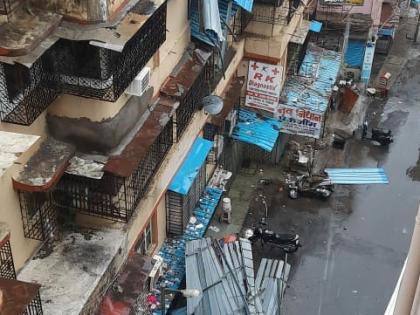 Tauktae Cyclone In Mira Bhayandar : महापालिकेच्या भाईंदर, तलाव मार्गावरील प्रभाग कार्यालय, फॅमिली केअर रुग्णालय, भाईंदर स्थानक समोरील अनुसया इमारत, पूनम सागर वसाहत आदी अनेक इमारतींचे गच्चीवर लावलेले पत्रे वादळाने उडवून लावले.