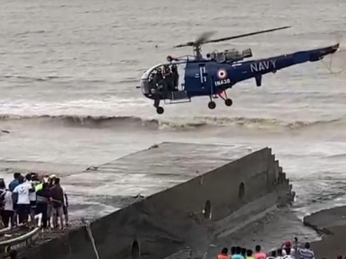 मीरारोड - तौत्के चक्रीवादळामुळे मंगळवारी सुद्धा वारा व पाऊस जोरात असताना नौदलाच्या एका टेहळणी हॅलिकॉप्टरचं वादळी वाऱ्यांमुळे वैमानिकास भाईंदरच्या पाली येथील जेट्टीवर इमर्जन्सी लँडिंग करावं लागलं. हॅलिकॉप्टर उतरल्याचे कळताच मच्छीमारांनी ते पाहण्यासाठी किनाऱ्यावर गर्दी केली. मंगळवारी सकाळी नौदलाचे टेहळणी हॅलिकॉप्टर भाईंदर जवळील उत्तन भागात घिरट्या घालत पाली गावातील समुद्र किनाऱ्यावर असलेल्या जेट्टीवर अचानक उतरले.