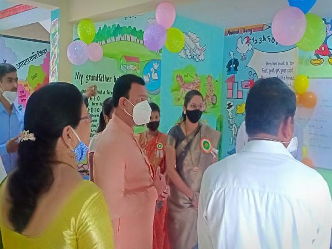 भिवंडी - सध्या इंग्रजी माध्यमाच्या उच्चभ्रू शाळांमुळे जिल्हा परिषद व शासकीय शाळा पटसंख्येत मागे पडत आहेत. असे असतानाच जिल्हा परिषदेच्या एक वर्ग खोलीची शाळा बनविण्यासाठी जिल्हा परिषदेने मान्यता दिल्यानंतर, शाळेतील शिक्षकाने पुढाकार घेत लोकवर्गणीतून सुंदर व सुबक एक मजली शाळा उभारली. या शाळेत विद्यार्थ्यांना अभ्यासासाठी पोषक वातावरण निर्माण करण्यासाठी सर्व वर्ग खोल्यांच्या भिंतींवर सुंदर चित्र रेखाटले आहेत. (Teacher initiative; A magnificent school built With the participation of the people)