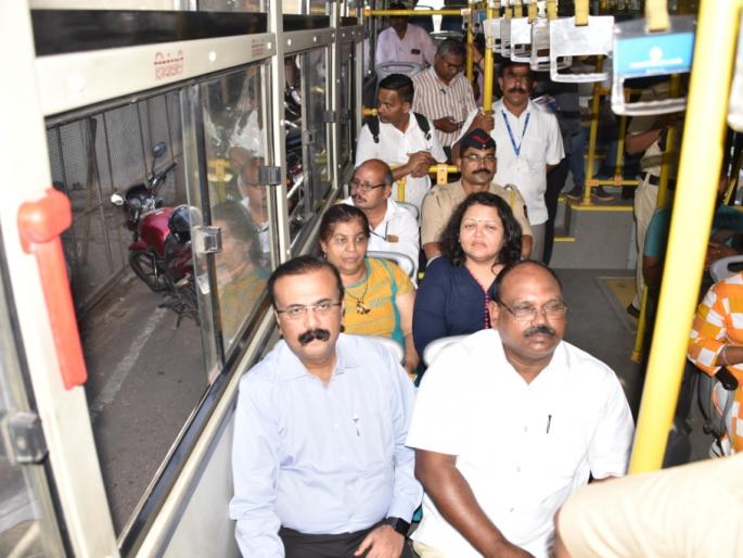 जिल्हाधिका-यांसमवेत या बसमध्ये दिव्यांग मतदारांचे आयकॉन अशोक भोईर, जिल्हा उपनिवडणूक अधिकारी तथा उपजिल्हाधिकारी अपर्णा सोमाणी, नोडल अधिकारी रेवती गायकर, आरटीओ अधिकारी व दिव्यांगाना मतदानाच्या दिवशी सेवा देण्यासाठी तत्पर राहणारे नोडल अधिका-यांचा देखील समावेश होता. जिल्हाधिकारी कार्यालयाजवळून निघालेली ही बस एम्प्लॉयमेंट आफिसजवळील आठ मतदान केंद्रांच्या थांब्यासह सेंट जॉन्स हायस्कूल जवळील चार केंद्र, दगडी शाळा, महाराष्ट्र विद्यालय न्यू इंग्लीश स्कूल आदी ठिकाणी असलेल्या २४ मतदान केंद्रांच्या बस थांब्यांचा आढावा यावेळी जिल्हाधिका-यांनी घेतला. सुमारे ४० मिनीटांच्या प्रवासात एक बस ६७ मतदान केंद्रांवरील दिव्यांग मतदार व जेष्ठ नागरिक मतदारांना ने आण करणार आहेत. अशा २० बसेस ठिकठिकाणच्या शहरात धवणार आहेत. तर ग्रामीण भागात या मतदारांसाठी ठिकठिकाणी ७४० रिक्षा धावणार आहेत. बस किंवा रिक्षा उपलब्ध न झाल्यास दिव्यांग मतदारांनी १९५० या हेल्पलाइनवर तत्काळ संपर्क साधून वाहन उपलब्ध करून घेता येणार असल्याचे जिल्हाधिकाºयांनी यावेळी सांगितले.