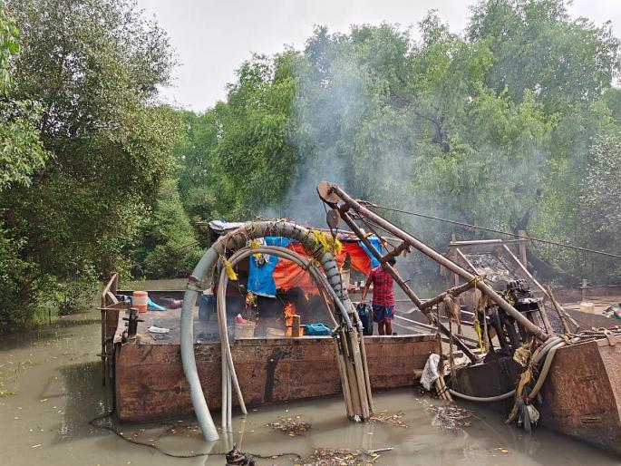 खाडीमधील अवैध रेती उत्खननाला आळा घालण्यासाठी जिल्हाधिकारी अशोक शिनगारे व अपर जिल्हाधिकारी मनिषा जायभाये यांनी कडक कारवाई करण्याचे व गस्त घालण्याचे निर्देश दिले होते. त्यानुसार भिवंडीचे उपविभागीय अधिकारी अमित सानप, तहसिलदार (रेती गट) राहुल सारंग व भिवंडी तहसिलदार अधिक पाटील यांच्या मार्गदर्शनाखाली जिल्हाधिकारी कार्यालयाचे फिरते पथक व भिवंडी तहसील कार्यालय, भिवंडी मंडळ अधिकारी व भिवंडी व खारबाव तलाठी यांच्यामार्फत काल्हेर आलीमघर खाडीत कारवाई करण्यात आली. यामध्ये दोन बार्ज, तीन संक्शन पंप आढळून आले. हे बार्ज व संक्शन पंपचे वॉल काढलेले असल्याने ते किनारी भागात आणणे शक्य नसल्याने जागेवर जाळून खाडीमध्येच बुडवून नष्ट करण्याची कारवाई करण्यात आली. या कारवाईमध्ये अंदाजे ५० लाख रुपयांचा मुद्देमाल नष्ट करण्यात आला, अशी माहिती जिल्हा प्रशासनाने दिली आहे.