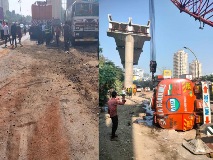उलटलेला ऑईलचा टँकर सुमारे सहा तासानंतर मेकॅनिक क्रेनच्या सहाय्याने उचलून एका बाजूला करण्यात आला. ऑइल सांडलेल्या ठिकाणी आपत्ती व्यवस्थापन कक्षाचे कर्मचारी व अग्निशमन दलाच्या जवानांनी माती पसरवून हा रस्ता वाहतुकीसाठी मोकळा केला. पहाटे ६ ते दुपारी १२ या दरम्यान सेवा रस्त्यावरील वाहतूक बंद ठेवावी लागली होती. तसेच मुख्य रस्त्यावरही वाहतूकीचा काही काळ खोळंबा झाला होता. दुपारी १२ नंतर मात्र, ही वाहतूक पूर्ववत झाल्याची माहिती सूत्रांनी दिली.