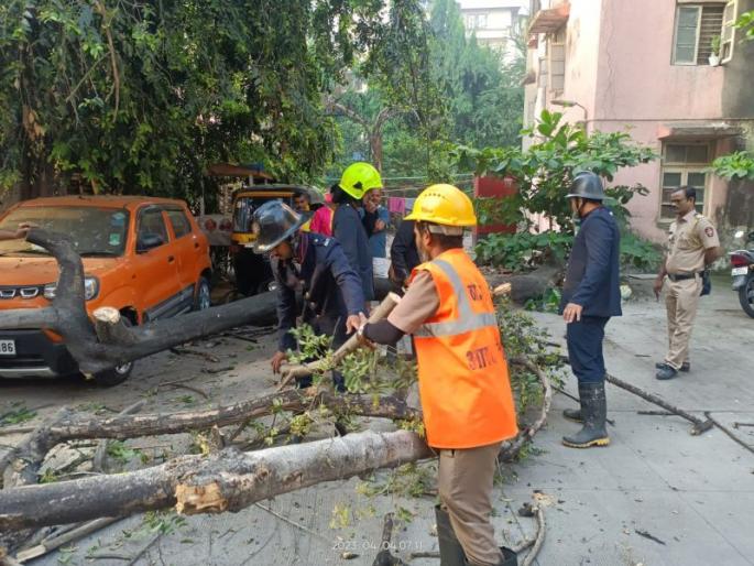 ठाण्यातील कोर्टनाका, सेंट्रल मैदान,पोलीस लाईनच्या आवारामधील एक झाड तेथे पार्क केलेल्या दोन चारचाकी व एका दुचाकी वाहनांवर कोसळले ही घटना मंगळवारी सकाळी पावणे सात ते सात वाजण्याच्या घडली. तर दुसरी घटना मंगळवारी सकाळी साडेसहा वाजण्याच्या सुमारास बाळकुम, लोढा जॉगिंग ट्रॅक जवळ घडली. या ठिकाणी रोडवरती झाड पडले. या दोन्ही घटनांची माहिती मिळताच त्या त्या घटनास्थळी आपत्ती व्यवस्थापन कक्षाचे कर्मचारी आणि अग्निशमन दलाचे जवान यांनी धाव घेतली. तसेच पडलेले झाडे कापून एका बाजूला करण्यात आले आहे. तर कोर्टनाका येथील घटनेत, झाड पडल्याने तिन्ही वाहनांचे किरकोळ नुकसान झाले असे आपत्ती व्यवस्थापन कक्षाकडून सांगण्यात आले.