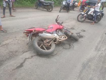रक्षाबंधानासाठी माहेरी जाणाऱ्या महिलेच्या पतीची दुचाकी खड्ड्यात आदळल्याने अपघात; तीनजण जखमी