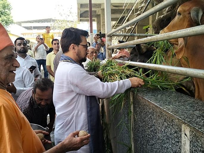 उल्हासनगर : एकदिवसीय शहर दौऱ्यात केंद्रीयमंत्री अनुराग ठाकूर यांनी स्वामी शांतीप्रकाश आश्रमाला भेट दिल्यावर, त्यांनी गौशाळेला भेट दिली. यावेळी ते गौशाळेत रमल्याचे दिसले. त्यांच्या सोबत देवप्रकाश महाराज, आमदार कुमार आयलानी, प्रकाश माखिजा, प्रदीप रामचंदानी यांच्यासह पक्ष पदाधिकारी उपस्थित होते.