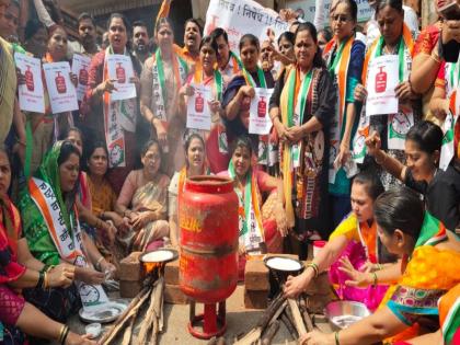 ठाणे - घरगुती गॅस सिलिंडरच्या दरात केंद्र सरकारने प्रचंड दरवाढ केली आहे. या दरवाढीच्या निषेधार्थ राष्ट्रवादी काँग्रेसच्या वतीने शहराध्यक्ष आनंद परांजपे यांच्या मार्गदर्शनानुसार कार्याध्यक्षा सुरेखा पाटील आणि विरोधी पक्षनेत्या प्रमिला केणी यांच्या नेतृत्वाखाली आंदोलन करण्यात आले. राष्ट्रवादी काँग्रेसच्या महिला कार्यकर्त्यांनी चक्क चूल पेटवून त्यावर भाकर्या भाजल्या.