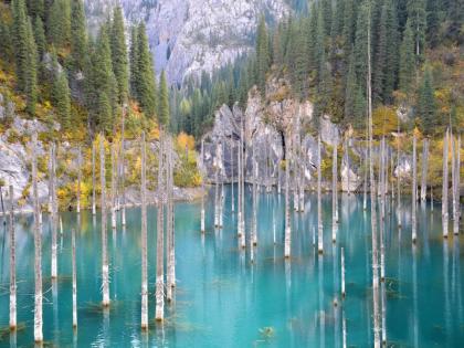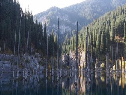 या पाण्यातील जंगलात झाडं सरळ नाही तर उलट्या दिशेने उगवली आहेत. हा आगळावेगळा तलाव कजाखस्तानमध्ये आहे. याचं नाव लेक कॅंडी' असं आहे. या तलावात वेगवेगळ्या प्रकारचे लाकडाचे खांब उभे राहीले आहेत. ही लाकडं अर्ध्योपेक्षा जास्त पाण्यात बुडालेली आहेत.