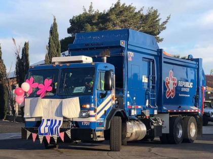 सात कचऱ्याच्या ट्रकची परेड आणि एक गिफ्ट बॅग