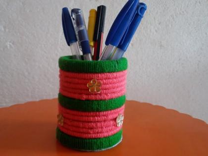 9) हा पेनस्टॅण्ड शक्यतो काचेच्या बांगड्यांचा करू नका. कारण चुकूनही तो पडला तर फुटेल.
