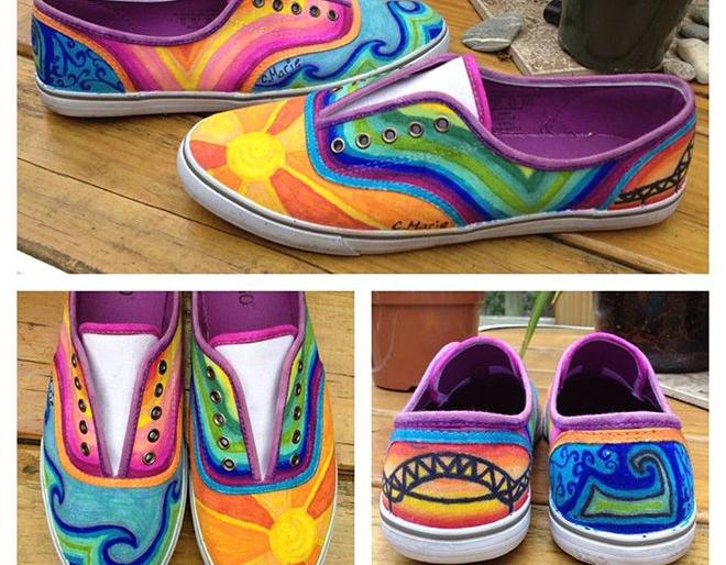 6) आणि मस्त रंगवा. रंग वापरताना शक्यतो ब्राईट कलर्स वापरा. म्हणजे तुमचे बूट उठावदार दिसतील.