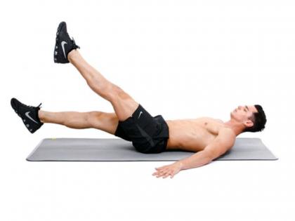 4- आता आपले दोन्ही पाय सुमारे तीस अंशात वर उचला. हवेत. पाय गुडघ्यात वाकवायचे नाहीत.