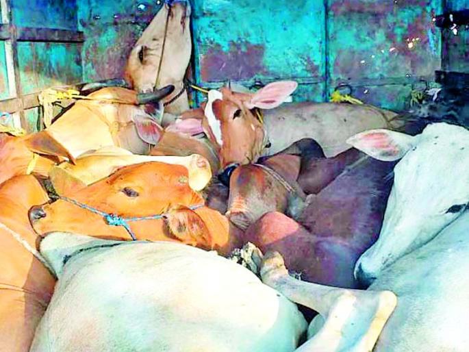 हिंगणघाटकडून वायगाव (नि.) चौरस्ता मार्गे पुलगाकडे दोन मालवाहूत गायी कोंबून नेल्या जात असल्याची माहिती देवळी पोलिसांना मिळाली. या माहितीच्या आधारे पोलिसांनी वायगाव चौरस्त्यावर नाकेबंदी करुन मालवाहू वाहनांना थांबविण्याचा प्रयत्न केला. परंतु वाहनचालकांनी पोलिसांना चकमा देत पळ काढला. त्यामुळे पोलिसांनी त्याचा पाठलाग करुन काही अंतरावर दोन्ही वाहनांना पकडण्यात यश आले.पण, आरोपींनी वाहने रस्त्यावरच उभी करुन पळ काढला. पोलिसांनी एम.एच ०६ बीजी ४१७८ आणि एम.एच २७ एक्स ६३९२ क्रमांकाची दोन्ही वाहने जप्त केली असून त्यामध्ये कोंबलेल्या २३ गायींना बाहेर काढले. तेव्हा त्यातील एक गाय मृतावस्थेत आढळून आली. पोसिलांनी पंचनामा करुन सर्व गायी सर्वोदय गोशाळा, पढेगाव येथे पाठविल्या. यातील बºयाच गायी जखमी झाल्या असून त्यांच्यावर गोशाळेत उपचार सुरु केले आहे. या गुन्ह्यात पोलिसांनी दोन मालवाहू वाहनासह ९ लाख १९ हजार ९०० रुपयाचा मुद्देमाल जप्त केला.