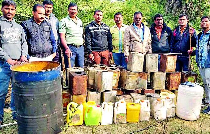 लोकमत न्यूज नेटवर्कवर्धा : स्थानिक गुन्हे शाखेच्या पोलिसांनी गोपनिय माहितीच्या आधारे डी.एल.०४ सी.ए.ई. ४१७० क्रमांकाची कार अडवून पाहणी केली असता त्यात मोठ्या प्रमाणात दारूसाठा आढळून आला. तो पोलिसांनी जप्त केला आहे. शिवाय अविनाश यादव रा. नागपूर याला ताब्यात घेण्यात आले आहे.पुलगावकडून दहेगाव मार्गे वर्धेकडे दारूसाठा आणल्या जात असल्याची माहिती मिळताच सावंगी परिसरात नाकेबंदी करण्यात आली. काही वाहनांची पाहणी केल्यावर या वाहनात दारूसाठा आढळून आला. वाहनातील अविनाश यादव (२६) याला ताब्यात घेवून त्याच्याजवळून वाहनासह एकूण ४ लाख ४७ हजार ४०० रुपयांचा मुद्देमाल जप्त करण्यात आला. या प्रकरणी आरोपीविरुद्ध मुंबई दारूबंदी कायद्यान्वये गुन्हा नोंदविण्यात आला आहे. ही कारवाई निरंजन वरभे, संजय ठोंबरे, राकेश आष्टनकर, रितेश शर्मा, संघसेन कांबळे, विकास अवचट, गणेश खेवले यांनी केली.साहूर पारधी बेड्यावर ‘वॉश आऊट’आष्टी (शहीद) : साहुर येथील पारधी बेड्यावर मोठ्या प्रमाणात गावठी दारू अवैधरित्या तयार करून त्याची विक्री केली जात असल्याची माहिती ठाणेदार रेवचंद्र सिंगनजुडे यांना मिळाली. त्या आधारे आष्टी पोलिसांच्या चमुने साहुरच्या पारधी बेड्यावर छापा टाकून वॉश आऊट मोहीम राबविली. या मोहिमेदरम्यान पोलिसांनी मोठ्या प्रमाणात मोहरसायन सडवा व गावठी दारू नष्ट करून दारू गाळण्याचे साहित्य असा एकूण ३१ हजारांचा मुद्देमाल जप्त केला आहे.आष्टी तालुक्यात गेल्या काही महिन्यापूर्वी मोठ्या प्रमाणात गावठी दारू विकल्या जात होती. मात्र, ठाणेदार सिंगनजुडे रूजू झाल्यावर त्यांनी या अवैध दारूविक्रीला आळा घातल्याचे दिसते. वारंवार धाडी टाकून दारूविक्रेत्यांना धडा शिकवला. पुन्हा दारूविक्रीचा व्यवसाय आपले पायमुळ घट्ट करू पाहत असल्याचे निदर्शनास येताच आष्टी पोलिसांनी सध्या विशेष मोहीम हाती घेतली आहे. या मोहिमेदरम्यान पोलिसांनी साहुर पारधी बेड्या येथील प्रकाश भोसले (५२) यांच्यावर दारूविक्री प्रकरणी गुन्हा दाखल करून त्यास अटक केली आहे. ही कारवाई ठाणेदार रेवचंद सिंगनजुडे यांच्या मार्गदर्शनात पोलीस उपनिरीक्षक डी. एस. केकन, राजू दहिलेकर, विनोद वरहारे, महेंद्र अंबुडारे, रवींद्र रघाटाटे, खोमदेव वैरागडे, विलास राठोड, निलेश वंजारी, नंदकिशोर वाढवे, बाबासाहेब गवळी, निखिल वाणे यांनी केली.