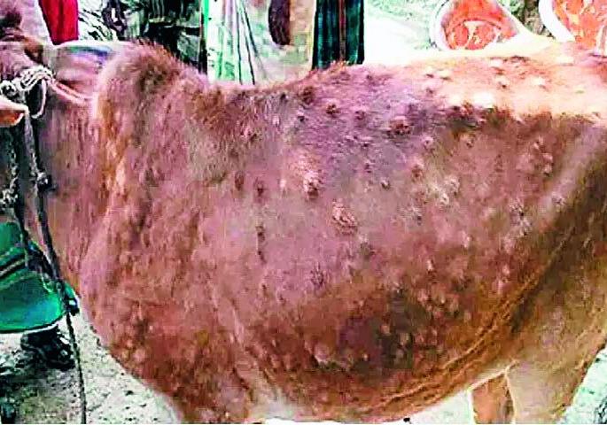 लम्पी चर्मरोगाची लक्षणे- लम्पी चर्मरोग हा विषाणूजन्य आजार आहे. जनावरांची दूध उत्पादन क्षमता घटते. शिवाय प्रजनन क्षमतेवर परिणाम होतो. - सुरुवातीला जनावरास दोन-तीन दिवस ताप जाणवतो. यानंतर जनावरांच्या सर्व शरीरावर कडक व गोल आकाराच्या गाठी येतात. - या गाठी ४ ते ५ दिवसांत फुटतात आणि त्यातून पस बाहेर येतो. या गाठी सर्वसाधारणपणे पोट, पाठ पाय व जननेंद्रियाच्या भागात येतात. - जनावरांच्या डोळ्यांतून, नाकातून पाणी येते. - तोंडातील व्रणामुळे आजारी जनावरांना चारा खाता येत नाही. - पायावरील गाठीमुळे जनावरे चालणे कठीण होते. - डोळ्यांमध्ये व्रण पडतात व कालांतराने दृष्टी बाधित होण्याची शक्यता असते. - न्यूमोनिया व श्वसन संस्थेची लक्षणे आढळतात. - अशक्तपणामुळे जनावरांचा या आजारातून बरे होण्यास बऱ्याच दिवसांचा कालावधी लागतो.- हा आजार बरा होण्यासाठी किमान दोन तीन आठवड्यांचा कालावधी लागतो.