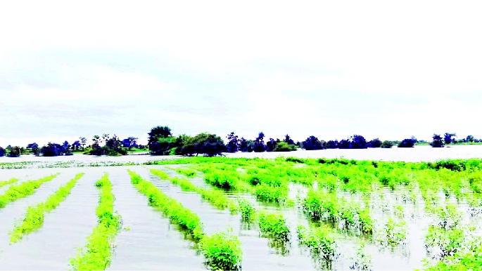 वर्धा नदीकाठावरील रोहणा, दिघी, सायखेडा व वडगांव येथील शेतकऱ्यांची अंदाजे ५०० एकरातील पिके पाण्याखाली आल्याने पिके धोक्यात आली आहे. निम्न वर्धा प्रकल्पातील ३१ दरवाजे ३० से.मी.ने उघडल्यामुळे नदीत ८५७ क्युसेक्स पाण्याचा विसर्ग सोडला. रात्रीच्या सुमारास पाऊस सुरूच असल्याने धरणाचे सोडलेले पाणी व पावसाचे पाणी यामुळे वर्धा नदीतील पुराच्या पाण्याच्या पातळीत कमालीची वाढ झाली आहे. परिणामी, नदीला मिळणाऱ्या नदी,नाल्यांचे पाणी वर्धा नदीपात्रात समावू शकले नसल्याने नदीकाठावर असलेले जमीन पाण्याखाली गेली आहे. रोहणा, सायखेडा, दिघी, वडगाव येथील शेतकऱ्यांनी शेतात कापूस, तुर, सोयाबीन ही पीके घेतली आहे. शेतकºयांनी मोठा खर्च करुन पिके घेतली आहे.