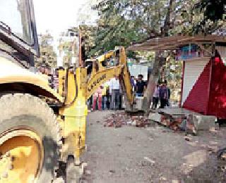 साडेसहा हजारांचा दंड वसूल : नगर पालिकेकडून अतिक्रमण हटाव वर्धा : गत दोन दिवसांपासून शहरातील अतिक्रमण हटविण्याची कारवाई केली जात आहे. यात शुक्रवारी डॉ. बाबासाहेब आंबेडकर पुतळा ते बजाज चौकापर्यंतचे रस्त्याच्या दुतर्फा असलेले अतिक्रमण हटविण्यात आले. यात सुमारे ५५ दुकाने हटविण्यात आली असून पक्के बांधकाम जेसीबीच्या साह्याने तोडण्यात आले. या कारवाईत ६ हजार ५०० रुपयांचा दंडही वसूल करण्यात आला. शहरात वाढलेल्या अतिक्रमणामुळे अनेक रस्ते अरूंद होत आहेत. रस्ते मोकळे करण्यासाठी वर्धा नगर पालिकेच्यावतीने अतिक्रमण हटाव मोहीम हाती घेण्यात आली आहे.