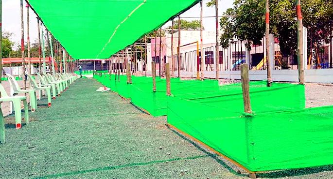 या ठिकाणी तब्बल ४२ दुकांनाची व्यवस्था करण्यात आली आहे. प्रत्येक दुकानांमध्ये तीन फुटाचे अंतर ठेवण्यात आले असून येथे सोशल डिस्टंन्सिंगचे काटेकारपणे पालन व्हावे म्हणून व्यवस्था करण्यात आली आहे. दुकानापासून काही अंतराव हिरवी नेट टाकली असून त्या ठिकाणी सामाजिक अंंतर ठेऊन ग्राहकांना बसण्याकरिता चार खुर्च्यांची व्यवस्था करण्यात आली. त्यानंतर बाहेरही रकाने तयार करुन ग्राहकांना तेथे उभे ठेवण्यात येणार आहे.