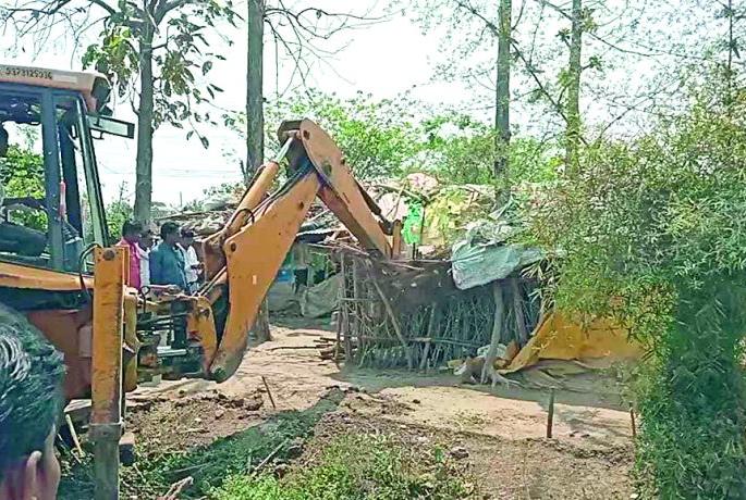 लोकमत न्यूज नेटवर्कसेलू (घोराड) : नजीकच्या कोलगाव येथील आबादी जागेवर काही आदिवासी समाज बांधवांनी अतिक्रमण करून झोपड्या बांधल्या. बुधवारी ९ मार्च रोजी पोलीस बंदोबस्तात खापरी ग्रा.पं. ने त्यांच्या झोपड्यांवर गजराज चालवून अतिक्रमण काढल्याने आदिवासी समाजातील नागरिकांचा संसार उघड्यावर आला.कोलगाव येथे आदिवासी बांधवांची १०० घरांची वस्ती आहे. त्यांनी गावातील आबादी जागेवर तुराट्या, ताट्या व टिनाच्या झोपड्या बांधून घरे उभी केली होती. त्यातील काहींना शासकीय घरकुलही मंजूर झाले आहे. पण, त्यांच्याजवळ हक्काची व स्वमालकीची जागा नसल्याने घरकुल बांधकाम करता आले नाही. ग्रामपंचायतीनेदेखील त्यांना जागा उपलब्ध करून दिलेली नाही. अनेक वर्षांपासून आदिवासी बांधव मोलमजुरी करून त्या जागेवर वास्तव्य करीत असतानाच त्यांचे अतिक्रमण नियमाकुल झाले नाही, असे कारण समोर करून त्या जागेवर व्यायामशाळा बांधायची असल्याचे सांगून सरपंच प्रमोद गव्हाळे, ग्रामसेवक शेटे यांनी बुधवारी अतिक्रमणावर जेसीबी चालवून आदिवासींचा संसार उघड्यावर आणला. यावेळी सरपंच प्रमोद गव्हाळे, उपसरपंच पुरुषोत्तम वैद्य, पोलीस उपनिरीक्षक गजानन कंगाले, मंडळ अधिकारी भोले, तलाठी घोडके, पोलीस पाटील कविश कोटंबकार, ग्रामपंचायत सदस्य, पोलीस कर्मचारी व गावातील नागरिक उपस्थित होते. अतिक्रमण असलेली घरे पाडण्यात आल्याने १० ते १५ आदिवासी लोकांचा संसार उघड्यावर आला असून, त्यांच्यासमोर मोठा प्रश्न उभा ठाकला असून अनेकांचे संसार उघड्यावर आले आहे.