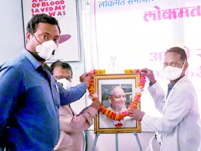 लोकमत न्यूज नेटवर्कवर्धा : लोकमतचे संस्थापक तथा जेष्ठ स्वातंत्र्य संग्राम सेनानी स्व. जवाहरलालजी दर्डा (बाबूजी) यांच्या जयंतीचे औचित्य साधून लोकमत परिवार आणि विविध सामाजिक संघटनांच्या संयुक्त विद्यमाने गुरूवारी स्थानिक जिल्हा सामान्य रुग्णालयात रक्तदान शिबिर पार पडले. या शिबिरात ३० व्यक्तींनी रक्तदान करून बाबूजींना आदरांजली अर्पण केली.लोकमत परिवार, जयहिंद फाऊंडेशन, मराठा सैनिक वेलफेअर असोसिएशन, प्रहार, युवा सोशल फोरम तसेच युवा परिवर्तन की आवाज या सामाजिक संघटनांच्या संयुक्त विद्यमाने आयोजित रक्तदान शिबिराचे उद्घाटन जिल्हा शल्य चिकित्सक डॉ. पुरुषोत्तम मडावी, अतिरिक्त जिल्हा शल्य चिकित्सक डॉ. अनिल वानखडे यांनी बाबूजींच्या प्रतिमेला माल्यार्पण करून केले.याप्रसंगी युवा सोशल फोरमचे अध्यक्ष सुधीर पांगूळ, प्रहारचे जिल्हा प्रमुख विकास दांडगे, युवा परिवर्तन की आवाजचे संस्थापक अध्यक्ष निहाल पांडे, जय हिंद फाऊंडेशनचे बिपीन मोघे, लोकमतचे वर्धा कार्यालयाचे व्यवस्थापक उमेश शर्मा, लोकमतचे जिल्हा प्रतिनिधी अभिनय खोपडे, लोकमत समाचारचे जिल्हा प्रतिनिधी श्याम उपाध्याय आदींची प्रामुख्याने उपस्थिती होती. कोरोनाच्या पार्श्वभूमीवर खबरदारीचे उपाय आणि जिल्हा प्रशासनाच्या सूचनांचे पालन करून हे शिबिर पार पडले.रक्त संकलनासाठी सामान्य रुग्णालयाचे जनसंपर्क अधिकारी प्रवीण गावंडे, डॉ. देवर्षी धांडे, उज्ज्वल लामसोंगे, स्नेहल दाहाड, किशोर महाजन यांनी सहकार्य केले.या रक्तदात्यांनी केले रक्तदानजिल्हा सामान्य रुग्णालयात पार पडलेल्या शिबिरात अश्विनी इंगोले, मंगेश ढवळे, रमेश किन्हारे, राहुल चांदूरकर, आकाश कुटेमाटे, पंकज माहुरे, अक्षय झामरे, अॅलन मॅन्युअल, रोशन आखाडे, रोशन घुडे, संदीप कोल्हे, अरुण पाटणकर, श्याम साटोणे, दिनेश मडावी, पीयूष शेंबेकर, पुरुषोत्तम बजाईत, प्रशांत खोडे, कपील बालपांडे, अविनाश खोसे, पंकज घोनमोडे, अमित भोसले, दिनेश देवतळे, आनंद शेंडे, मंगेश देवतळे, प्रशांत गणोरे, सूरज गायकवाड, भूषण येलेकर, मयूर ढाले, नीलेश चातुरकर, स्वप्नील राऊत यांनी रक्तदान केले.