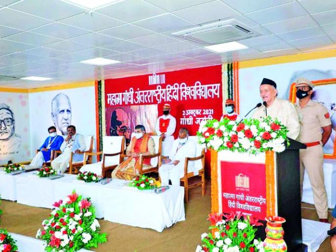 महर्षी, देवर्षी व राजर्षी, असे तीन द्रष्टे आहेत; पण महात्मा गांधी यांनी महात्मा हा नवा द्रष्टा रचला. सत्याची अनेक मुखे असून, महात्मा गांधी हे सत्याचे उपासक होते, असे सांगितले. कार्यक्रमाचे प्रास्ताविक महात्मा गांधी आंतरराष्ट्रीय हिंदी विश्व विद्यालयाचे कुलपती रजनीशकुमार शुक्ल यांनी केले, तर उपस्थितांचे आभार कुलसचिव कादर नवाज खान यांनी मानले.