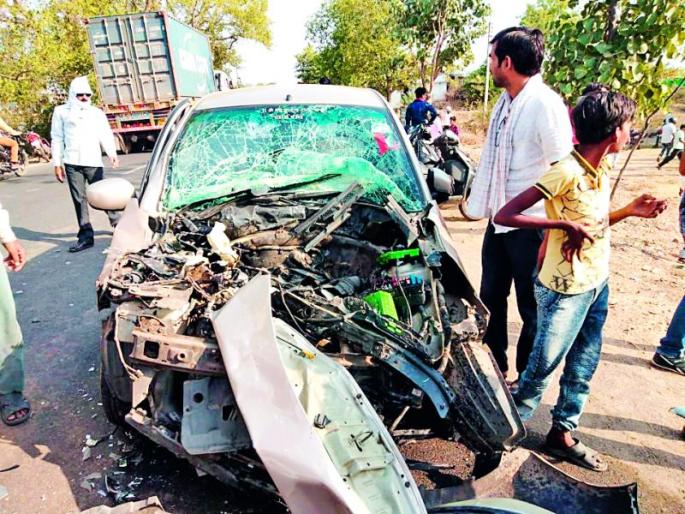 लोकमत न्यूज नेटवर्कगोरेगाव : तालुक्यातील मुंडीपार पेट्रोल पंपाजवळ झालेल्या मोटारसायकल व कारच्या अपघातात तीन जन गंभीर जखमी झाले. हा अपघात एवढा भीषण होता की मोटारसायकल शिवशाही बसच्या आत फरफटत गेली तर कारचा चेंदामेंदा झाला. सोमवारी (दि.२०) सायंकाळी ४ वाजतादरम्यान हा अपघात घडला.प्राप्त माहितीनुसार, नागपूरवरुन गोंदियाकडे जाणाऱ्या शिवशाही बसने विरुद्ध दिशेने येणाºया वाहनाला पाहून ब्रेक लावले. शिवशाहीच्या मागोमाग असलेल्या मोटारसायकल क्रमांक एमएच ३५-एसी ९३७२ च्या चालकानेही ब्रेक लावले. पण मोटारसायकलच्या मागे असलेल्या आय- १० कार क्रमांक एमएच ३५- सी ९४२ च्या महिला चालकाने मोटारसायकलला जोरदार धडक दिली. धडक ऐवढी जबरदस्त होती की मोटारसायकल शिवशाहीच्या आत घुसली. तर कारचा चेंदामेंदा झाला. या अपघातातील महिला चालक सालेकसा तालुक्यातील ग्राम साखरीटोला येथील एका खासगी शाळेच्या प्राचार्य असून त्यांचे नाव अजया चुटे आहे.त्यांच्या कारमध्ये देवांशी चुटे (१०,रा.आमगाव), तेजेश्वरी चुटे (१६,रा.राका) विशाखा दोनोडे (१६,रा.राका) व प्रणाली डोंगरे (१९,रा.राका) होते. तर मोटारसायकल वरील युवकाचे नाव नरेंद्र मेश्राम आहे. अपघातात अजया चुटे, नरेंद्र मेश्राम व कारमधील दोन मुली जखमी झाल्या असून त्यांना ग्रामीण रुग्णालयात प्राथमिक उपचारासाठी नेण्यात आले.