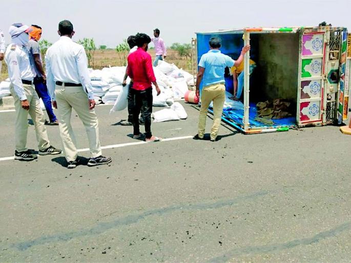 लोकमत न्यूज नेटवर्कसमुद्रपूर : केमिकल्सचे पावडर घेऊन चंद्रपूरकडे जात असलेल्या मालवाहूचा अचानक टायर फुटला. अशातच वाहनचालकाचे वाहनावरील नियंत्रण सुटून वाहन उलटले. या अपघातात मालवाहू चालक यशवंत रविंद्र कळमकर (२७) हा गंभीर जखमी झाला. ही घटना नागपूर-हैद्राबाद मार्गावरील बरबडी शिवारात शनिवारी सकाळी १० वाजताच्या सुमारास घडली.तिगाव येथील रहिवासी असलेला यशवंत कळमकर हा एम.एच. ३२ ए.जे. १७७९ क्रमांकाच्या मालवाहू मध्ये केमिकस्ल पावडर घेऊन चंद्रपूरच्या दिशेने जात होता. भरधाव मालवाहू बरबडी शिवारात आला असता मालवाहूचा मागील टायर अचानक फुटला. यात यशवंत गंभीर जखमी झाला. अपघात झाल्याची माहिती मिळताच जाम महामार्ग पोलीस चौकीचे सहाय्यक पोलीस निरीक्षक पाटील, शरद इंगोले, शेखर डोंगरे, ज्योती राऊत यांनी घटनास्थळ गाठून जखमीला रुग्णालयाकडे रवाना केले.दुचाकीची समोरासमोर धडक; बहीण-भाऊ जखमीअल्लीपूर : भरधाव दुचाकीने समोरून येणाऱ्या दुचाकीला धडक दिली. यात दुचाकीवरील बहिण-भाऊ जखमी झाले. हा अपघात भय्यापूर शिवारात झाला. अशोक भगत आणि सखू भगत हे दोघे बहिण-भाऊ एम. एच. ४० के. ३०३९ क्रमांकाच्या दुचाकीने कानगाव येथून मोझरी येथे जात होते. दरम्यान भय्यापूर शिवारात पंकज वाटकर रा. मोझरी याने त्याच्या ताब्यातील दुचाकी निष्काळजीपणे चालवून धडक दिली. यात अशोक आणि सखू हे जखमी झाले.