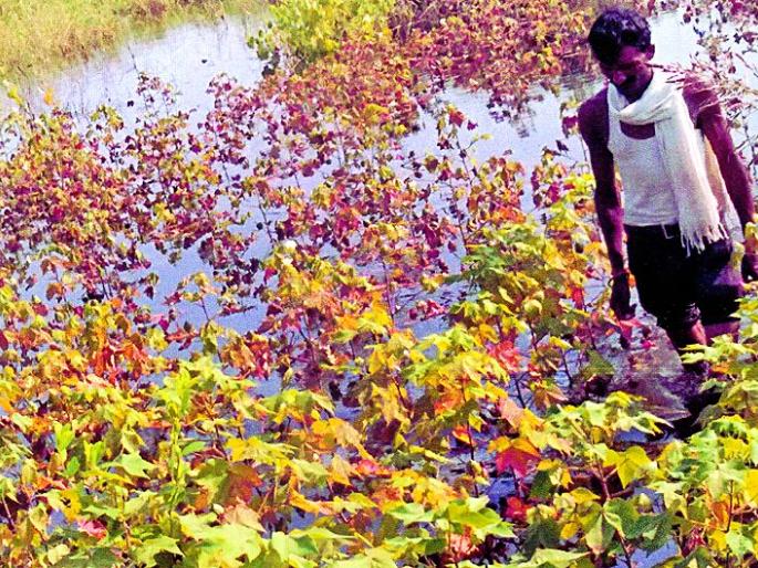 बॅक वॉटरमुळे सदर शेतकºयाचे दीड ते दोन लाखाचे नुकसान झाले असून सदर नुकसान भरपाई देण्याची मागणी निवेदनातून केली आहे. अतुल ठाकरे यांचे मौजा वाठोडा शिवारात शेत आहे. या हंगामात शेतकºयाने कपाशीची लागवड केली. तर दिवाळी दरम्यान शेतात कपाशीची वेचणी करण्यात येणार होती. यातच मागील आठवड्यात झालेल्या पावसाने निम्न वर्धा धरणाच्या बॅकवॉटरची पातळी वाढली. त्यामुळे पाणी सोडण्यात आले. हे पाणी नाल्यामार्गे थेट ठाकरे यांच्या कपाशीच्या शेतात शिरले. त्यामुळे त्यांच्या शेताला सद्यस्थितीत तळ्याचे स्वरूप आले आहे. शेतातील कपाशीचे पीक पिवळे पडून बोंडे सडत आहे. संबंधित विभागाकडून सदर शेतकºयाला पाण्याची पातळी वाढणार असल्याची कुठलीही पुर्वसूचना देण्यात आली नाही. हा प्रकार नित्याचाच असल्याचे सांगण्यात येते. बॅकवॉटर व ओलाव्यामुळे सदर शेतकºयावर हाती आलेले पीक गमावण्याची वेळ आली आहे. शिवाय धरणाच्या पाण्याची पातळी वाढल्यास उर्वरीत शेतातही पाणी साचण्याचा धोका निर्माण झाला आहे.