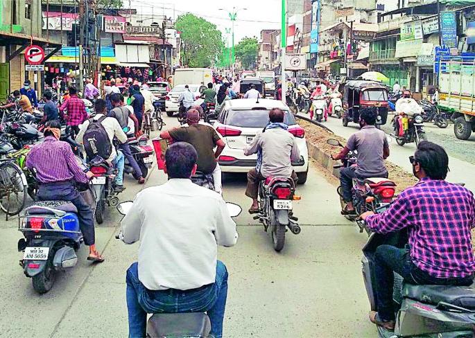 लोकमत न्यूज नेटवर्कवर्धा : सोमवार ३१ मे रोजी जिल्हाधिकारी प्रेरणा देशभ्रतार यांनी राज्य शासनाच्या सूचनांना केंद्रस्थानी ठेवून कठोर निर्बंधात थोडी शिथिलता दिली आहे. याच शिथिलतेचा पहिल्या दिवस असलेल्या मंगळवारी अत्यावश्यक सेवेसह इतर सेवेची प्रतिष्ठानेही उघडल्या गेल्याने नागरिकांनी विविध साहित्य खरेदीसाठी वर्धा शहरातील बाजारपेठेत एकच गर्दी केली होती. वर्धा नगरपालिका व लगतच्या अकरा ग्रामपंचायती, पुलगाव शहर व लगतच्या दोन ग्रामपंचायती तसेच हिंगणघाट शहर तसेच लगतच्या चार ग्रामपंचायती क्षेत्रात कोविड संसर्गाचा पॉझिटिव्हिटी दर जादा असल्याने या क्षेत्रातील अत्यावश्यक वस्तू व सेवेची प्रतिष्ठाने सोमवार ते शुक्रवार तसेच इतर सेवेची दुकाने सोमवार, मंगळवार व बुधवारी सकाळी ७ ते दुपारी १ या वेळेत तर जिल्ह्यातील उर्वरित क्षेत्रात मॉल व शॉपिंग सेंटर वगळता अत्यावश्यक व इतर सेवेची दुकाने सोमवार ते शुक्रवार या दिवशी सकाळी ७ ते १ या वेळेत सुरू ठेवण्याची परवानगी जिल्हा प्रशासनाने दिली आहे. सदर शिथिलता मिळताच दुकाने उघडल्याने मंगळवारी वर्धा शहरातील मुख्य बाजारपेठेत नागरिकांची एकच गर्दी उसळली होती. नागरिकांच्या गर्दीमुळे बजाज चौक ते छत्रपती शिवाजी पुतळा चौक या मार्गावर ठिकठिकाणी वाहतुकीची कोंडी झाली होती. त्यामुळे विविध कामानिमित्त बाजारपेठेत आलेल्या वाहनचालकांना नाहक त्रास सहन करावा लागला.