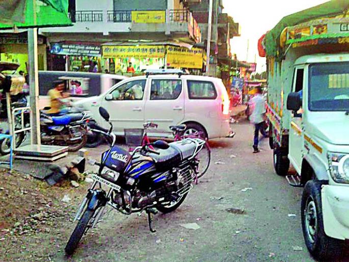 येथून दाभाकडे जाणाºया रस्त्यावर वाहने बेशिस्तपणे उभी ठेवली जातात. यामुळे वाहतुकीला अडथळा निर्माण होत असून पायी चालणेही अवघड झाले आहे.