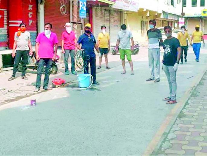 लोकमत न्यूज नेटवर्कवर्धा : संपूर्ण देशात कोरोनाचे संक्रमण रोखण्यासाठी पुढाकार घेण्यात येत असून प्रशासनाकडून विविध उपाययोजना राबविण्यत येत असून निर्मनुष्य रस्त्यांचे निर्जंतुकीकरण करण्यात येत आहे. याला आता स्थानिकांचीही मदत मिळू लागली असून कपडा लाईन परिसरात नवदुर्गा पूजा उत्सव समितीतील सदस्यांकडून स्व:खर्चातून परिसरात निर्जंतुकीकरण मोहिम राबविण्यात येत आहे.कोरोना विषाणू संसर्गाने नागरिकांमध्ये चांगलीच धास्ती भरली आहे. वर्धा जिल्ह्यात कोरोनाचा एकही रुग्ण नसला तरी प्रशासनाकडून कमालीची खबरदारी बाळगली जात आहे. विविध उपाययोजना राबविल्या जात आहे. संचारबंदी लागू असल्याने तसेच लॉकडाउनमुळे दुकानदारांनी आपली प्रतिष्ठाने बंद ठेवली आहेत. ऐरव्ही गजबजून राहणारे रस्ते निर्मनुष्य आहे. शहरातील रस्त्यांवर नगर पालिका प्रशासनाकडून निर्जंतुकीकरण औषधांची फवारणी केली जात आहे. प्रशासनाच्या या उपक्रमाला नागरिकांनीही मदतीची जोड दिली असून वर्ध्यातील नवदुर्गा पूजा उत्सव समितीने कपडा लाईन परिसरात निर्जंतुकीकरण मोहिम राबविली असून सर्वस्वी भार प्रशासनाला न देता स्वत:च उचलला आहे.या मोहिमेत परेश शर्मा, वरुण फत्तेपुरिया, नौशाद बक्ष, बंटी व्यास, निखील रोकडे, सचिन कासलीवाल, अंशुल जैन, अश्विन जैन आदींसह कपडा लाईन परिसरातील अनेक व्यावसायिक सहभागी होते.