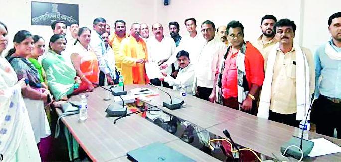 शहरातील अतिक्रमणाचा प्रश्न फार गंभीर असून याच कारणावरुन गुरुवारी पालिकेत गदारोळ झाला. यात नगरचनाकार शंतनू देवईकर यांनी उपाध्यक्ष प्रदिपसिंग ठाकुर यांच्याविरुद्ध तर ठाकूर यांनी देवईकर यांच्याविरुद्ध शहर पोलीस ठाण्यात तक्रार नोंदविली. या मारहाणीमुळे पालिकेच्या अधिकारी व कर्मचाऱ्यांनी गुरुवारपासून कामबंद आंदोलन पुकारुन कारवाईची मागणी केली आहे. तर उपाध्यक्ष ठाकूर यांच्यासह सर्व नगरसेवकांनी जिल्हाधिकाऱ्यांना निवेदन दिले आहे. नागरिकांनी समस्या सोडविण्याकरिता नगरसेवकांना निवडून दिले आहे. त्यांच्या समस्या सोडविण्याच्या दृष्टीने अधिकारी व कर्मचाऱ्यांना प्रभागातील कामाविषयी सांगितले तर ते उडवाउडवीचे उत्तरे देतात. तसेच हेके खोरीने वागून नगरसेवकांना अपमानास्पद वागणूक देतात. असाच प्रकार गुरुवारी पालिकेत घडला. उपाध्यक्ष प्रदीपसिंग ठाकूर यांनी अधिकाºयांना अतिक्रमणाबाबत अहवाल मागितला असता सहाय्यक नगर रचनाकार यांनी उलटसूलट उत्तर देऊन उपाध्यक्षांशी अरेरावी केली. त्यानंतर लगेच शहर पोलीस स्टेशन गाठून उपाध्यक्षांविरुद्ध तक्रार नोंदवित कामबंद आंदोलन सुरु केले. हा नित्याचाच झाला आहे. त्यामुळे पालिकेतील अधिकारी व कर्मचाऱ्यांनी नगरसेवकांना सन्मानजनक वागणूक देऊन प्रभागातील नागरिकांच्या तक्रारीचे वेळीच निराकरण करावे, अशी मागणी निवेदनातून केली आहे. अपर जिल्हाधिकारी संजय दैने यांना निवेदन देताना उपाध्यक्ष ठाकूर, गटनेता निलेश खोंडे, सोनल ठाकरे, संदीप त्रिवेदी, नौशाद शेख, निलेश किटे, वंदना भुते, इंदू तलमले, रवींद्र गोसावी,राधा चावरे,रंजना पट्टेवार, कैलास राखडे, गुंजन मिसाळ, आशिष वैद्य, शैलेंद्र झाडे, शुभांगी कोलते, प्रतिभा बुरले, श्रेया देशमुख, प्रदीप ठाकरे यांच्यासह सर्व नगरसेवक उपस्थित होते.