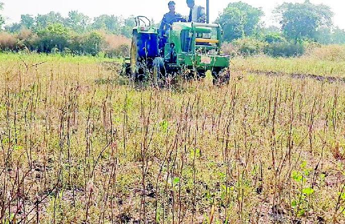 शेतकऱ्याने साडेतीन एकरातील सोयाबीनवर चालविला रोटाव्हेटर