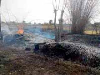 एकांबा येथील घटना : शेतकऱ्याचे दोन लाखांचे नुकसानसारवाडी : विद्युत तारांचा एकमेकांना स्पर्श होऊन उडालेल्या ठिणगीने आग लागली. यात एकांबा येथील शेतकरी सुधाकर ताथोडे यांचे दीड लाख व रामकृष्णा किनकर यांचे ६० हजार रुपयांचे नुकसान झाले. ही घटना शनिवारी सायंकाळी ४.३० वाजताच्या सुमारास घडली. आगीमध्ये सुधाकर ताथोडे यांचा संपूर्ण गोठा जळाला. यात ९० हजार रुपये किमतीचे १७०० बांबूसह शेतीपयोगी साहित्य आगीच्या भक्ष्यस्थानी आले. शेतीसाहित्यासह मोसंबीची २० झाडेही जळाली. आगीत त्यांचे दीड लाखांच्या वर नुकसान झाले. रामकृष्णा किनकर यांच्या शेतातील संत्र्याची ४० झाडे व ८ स्प्रिंकलर नळी बंडल आगीत खाक झाले. यात त्यांचे ६० हजार रुपयांचे नुकसान झाले. ग्रामस्थांनी आग विझविण्याचे प्रयत्न केले; पण आगीवर ताबा मिळेपर्यंत सर्वच साहित्याचा कोळसा झाला होता. या प्रकरणी शेतकऱ्यांनी सारवाडी येथील वीज वितरण कंपनीच्या अभियंत्याला तक्रार दिली. पटवाऱ्यालाही आगीची माहिती दिली. महावितरणने शेतकऱ्याला त्यांच्या झालेल्या नुकसानाची भरपाई द्यावी, अशी मागणी होत आहे.(वार्ताहर)