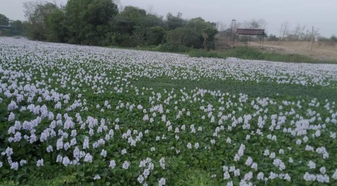 नदीपात्राचा विस्तीर्ण परिसर या गालिचाने संपूर्णपणे झाकून गेला असून, सूर्य मावळतीच्या वेळात विलोभनीय दृश्य अनेकजण कॅमेराबद्ध करीत आहेत. कोरोनाच्या काळातही नदीकाठावर हे दृश्य पाहण्यासाठी गर्दी होत आहे. भर उन्हाळ्यापूर्वी या बंधाऱ्याचे नियोजन केले असल्याने बंधारा पाण्याने तुडुंब भरून आहे. या पाण्यामुळे परिसरातील विहिरींचा व सर्व जलस्रोतांना फायदा झाला आहे. नदीपात्रावर असलेल्या पुलावरूनच नागपूर ते तुळजापूर मार्ग आहे. यावरून जाणाऱ्या-येणाऱ्यांनाही हे दृश्य आकर्षित करीत असल्याचे दिसून येत आहे.